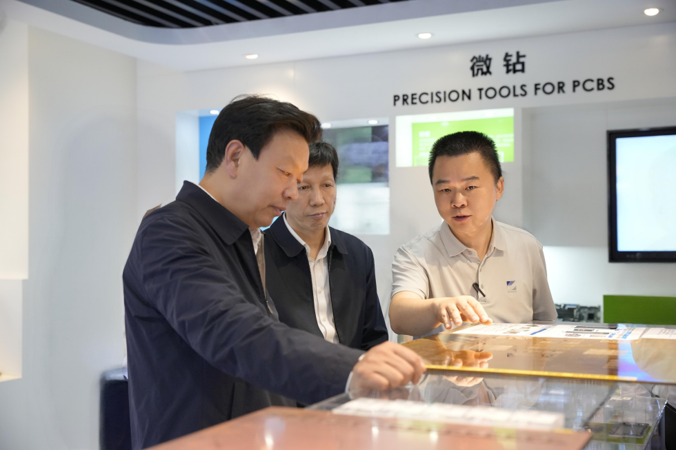 陈得信参观金洲公司产品展厅,实地调研智造运管中心、产品测试中心、自动化及涂层生产现场、科技大楼等,详细了解企业生产经营、科技创新、精益管理以及党的建设等工作情况,对AI PCB相关产品创新成果、自动化建设进程与发展规划、关键工序加工设备自制水平给予肯定,勉励大家坚持“精细管理、精益求精、精耕细作”理念,持续增强核心功能、提升核心竞争力,全力保障国家产业链供应链安全稳定。